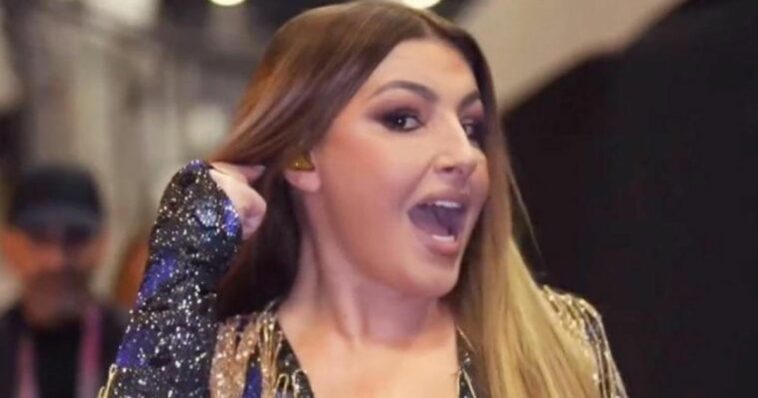 Μια πρώτη ματιά στο εντυπωσιακό φόρεμα μοιράστηκε η ίδια η τραγουδίστρια στα social media, όπου την βλέπουμε να το δοκιμάζει και να κάνει πρόβα για το χορευτικό της.