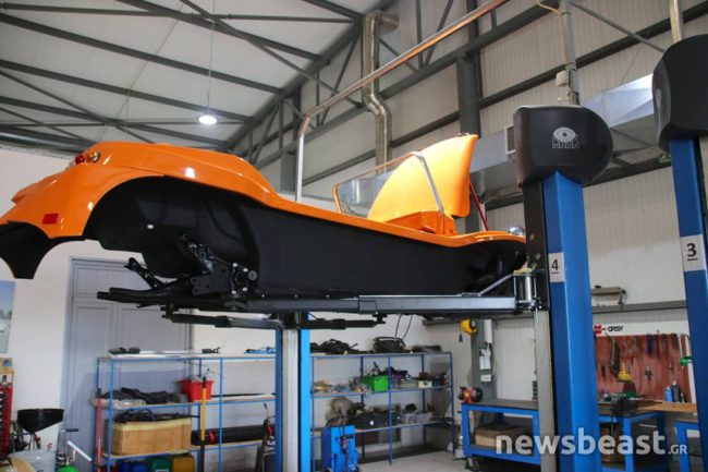 «Η παραγωγή φτάνει μέχρι και 25 αυτοκίνητα το χρόνο. Εάν έχουμε τα εξαρτήματα που χρειαζόμαστε εδώ στις εγκαταστάσεις και δεν χρειάζεται να περιμένουμε τότε μπορούμε να έχουμε ετοιμοπαράδοτο ένα αυτοκίνητο μέσα σε 2-3 μήνες», μας λέει με περηφάνια ο Σωκράτης.
