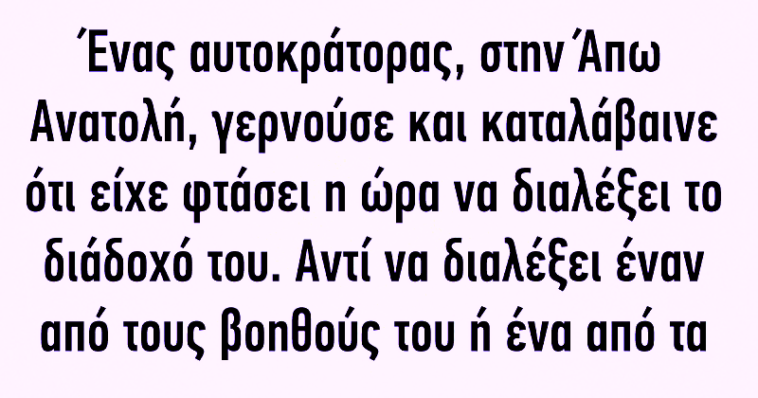 Ένας αυτοκράτορας, στην Άπω Ανατολή, γερνούσε και καταλάβαινε ότι είχε φτάσει η ώρα να διαλέξει το διάδοχό του. Αντί να διαλέξει έναν από τους βοηθούς του ή ένα από τα παιδιά του, αποφάσισε να κάνει κάτι διαφορετικό.