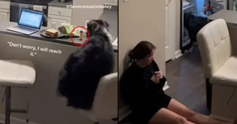 Το βίντεο δείχνει την Bailey να πηδά πάνω της και να την αναγκάζει να καθίσει, να της φέρνει φάρμακα από τον πάγκο και ένα μπουκάλι νερό από το ψυγείο.