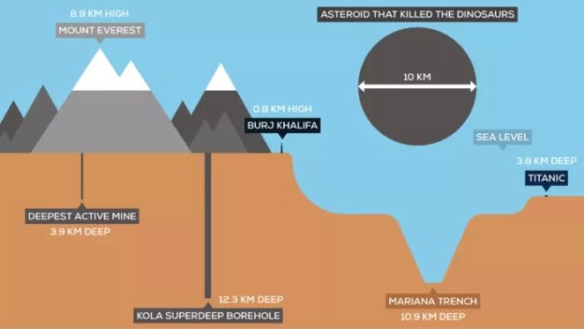 Για να έχετε περίπου μια εικόνα για το πόσο τεράστιο είναι το βάθος του σημείο, δείτε την φωτογραφία που ακολουθεί ώστε να κατανοήσετε τις αναλογίες.
