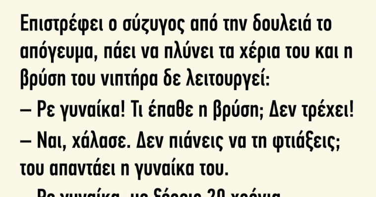 – Ρε γυναίκα, με ξέρεις 20 χρόνια… Με ξέρεις να φτιάχνω βρύσες;