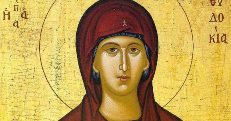 Η Αγία Ευδοκία, η οποία τιμάται σήμερα 1η Μαρτίου, γεννήθηκε στη Ηλιούπολη της επαρχίας Λιβανησίας, της Φοινίκης, την εποχή του Τραϊανού (98 – 117 μ.Χ.).