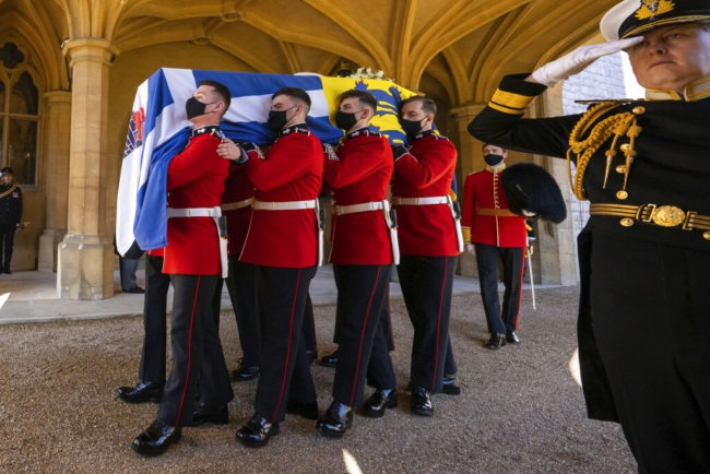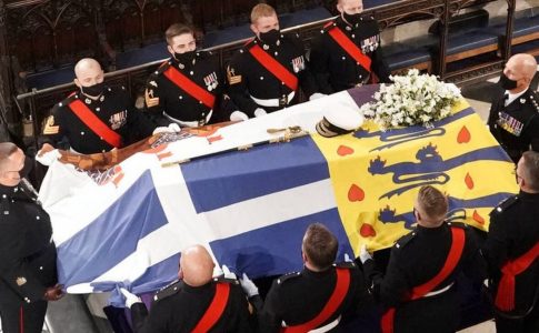 Στην κηδεία του δούκα του Εδιμβούργου, πρίγκιπα Φιλίππου, το φέρετρο ήταν σκεπασμένο με ένα λάβαρο που έφερε το οικόσημό του και στο οποίο ξεχώριζε ο ελληνικός σταυρός.