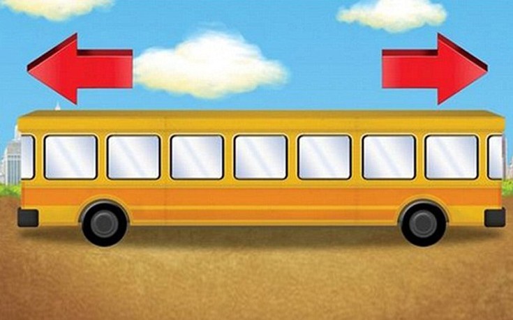 Το ερώτημα είναι «προς τα πού πηγαίνει το λεωφορείο» και η απάντηση είναι συνάρτηση μιας λεπτομέρειας που λίγοι παρατηρούν- ακόμα κι εκείνοι που απαντούν σωστά: στο γεγονός πως δεν φαίνονται οι πόρτες του.