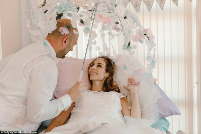 Μία νεαρή νύφη αντάλλαξε όρκους αιώνιας αγάπης με τον άντρα της ζωής της από το δωμάτιο του νοσοκομείου της, πριν φύγει από τον καρκίνο μόλις λίγες μέρες αργότερα.