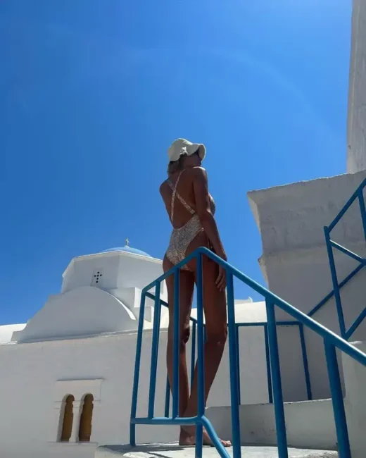 Η ίδια, κατά την παραμονή της στο νησί μοιράστηκε πολλές φωτογραφίες με τους διαδικτυακούς της φίλους, ενώ στην τελευταία της ανάρτηση, την βλέπουμε να ποζάρει με το μαγιό της στα πανέμορφα σοκάκια του νησιού.
