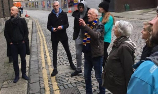 Κάθε γωνιά της διαδρομής των 2,5 χιλιομέτρων από τον Καθεδρικό Ναό του Αγίου Πατρικίου στην Παλιά Βιβλιοθήκη είναι ένα κομμάτι της ζωής που λέει ο Ντέρεκ στους ακροατές του.