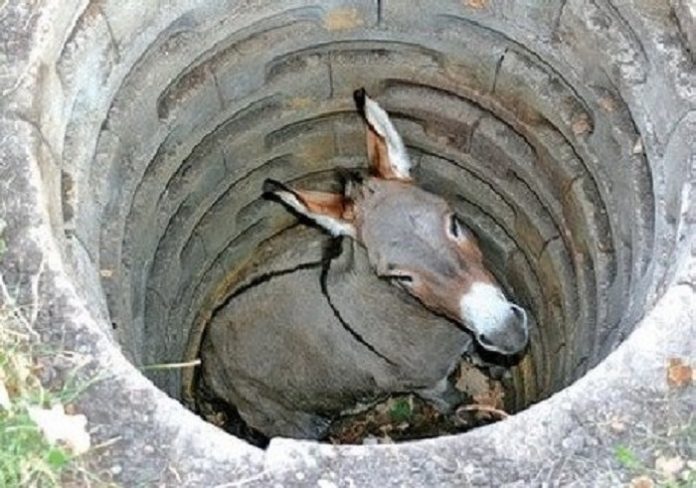 Δεν άξιζε τον κόπο να προσπαθήσει να σώσει τον γάιδαρο. Το μόνο που σκέφτηκε να κάνει ήταν να το θάψει ζωντανό. Κάλεσε όλους τους γείτονές του να έρθουν και να τον βοηθήσουν.