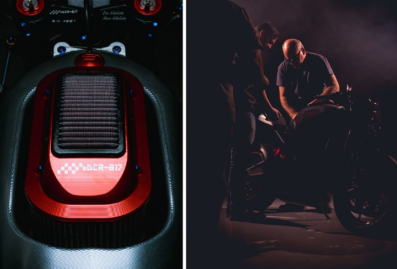 Αλλιώς δεν προλαβαίνεις σε ένα χρόνον να το κάνεις, η DCR 017 ξεκίνησε με ένα τρισδιάστατο 3D Cut (σ.σ ειδικό πρότυπο σχεδιασμού κατασκευασμένο σε υπολογιστή) και μετά προέκυψαν περίπου 1.500 επιμέρους σχέδια κατασκευαστικά για τα εξαρτήματα και για ό,τι άλλο χρειάστηκε να γίνει για τη μοτοσικλέτα» περιγράφει, ενώ για την ολοκλήρωση της μοτοσικλέτας εργάστηκε μια μικρή ομάδα της ελληνικής εταιρίας με την ονομασία DNA Filters Ltd.