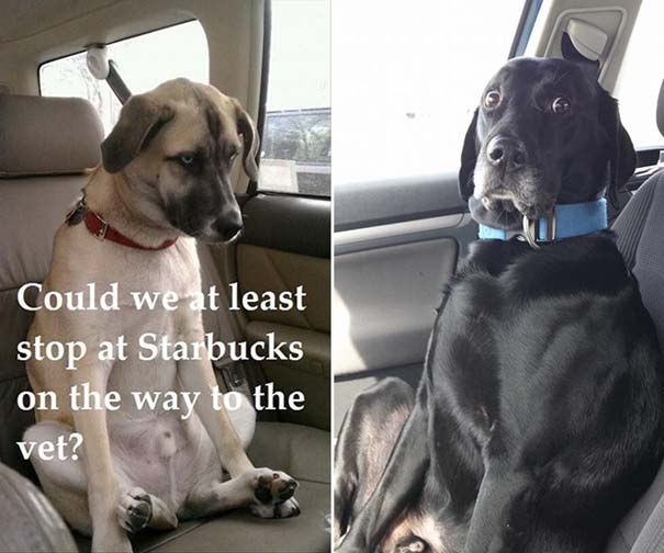 Η ξεκαρδιστική στιγμή που σκύλοι συνειδητοποιούν πως πάνε στον κτηνίατρο και όχι στο πάρκο.