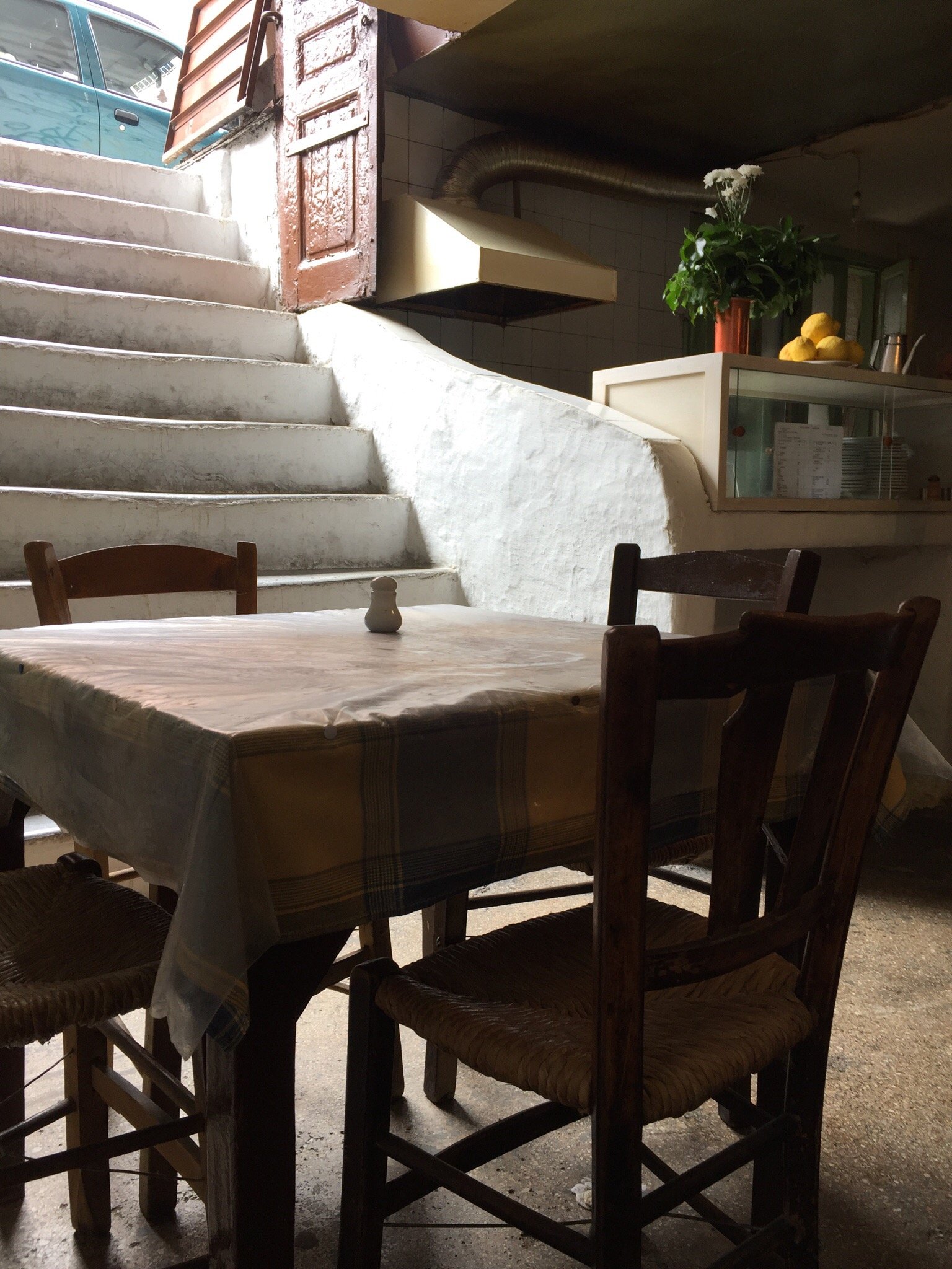 Μόλις κατέβεις τις σκάλες, επιστρέφεις στο παρελθόν. Στη δεκαετία του ’50. Γιατί από τότε το μαγαζί δεν έχει αλλάξει ούτε χιλιοστό. Ολα είναι όπως τότε. Μόνο ο κόσμος είναι διαφορετικός. Γιατί εκτός από τους εργαζόμενους στην Αγορά, τους πολιτικούς και τους διανοούμενους που το έχουν κάνει στέκι τους, πλέον εμφανίζονται συχνά και trendy τουρίστες, που έχουν μάθει για το Δίπορτο από διθυρμαβικά αφιερώματα που του έχουν κάνει διάσημοι youtubers που ασχολούνται με την κουζίνα.