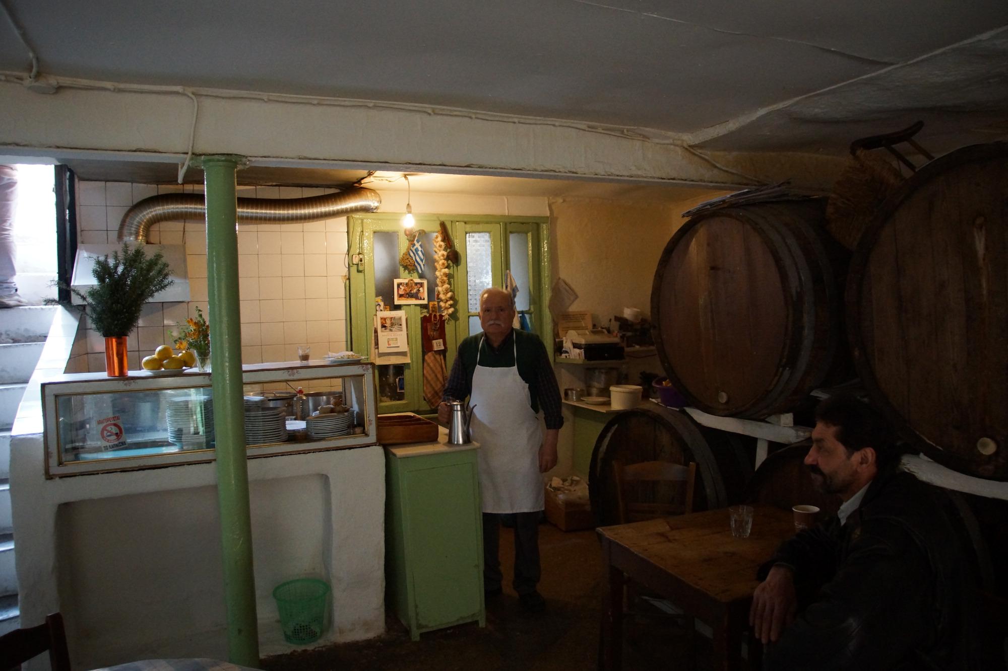 «Αν δεν είσαι αυστηρός εδώ, δεν γίνεται», μας λέει ο κυρ Μήτσος, που έχει περάσει σε αυτό το παλιό κουτούκι 50 χρόνια από την ζωή του. Απο μπακαλόγατος του παλιού ιδιοκτήτη ο κύριος Μήτσος, τώρα «τρέχει» αυτός το μαγαζί, μαζί με έναν βοηθό.