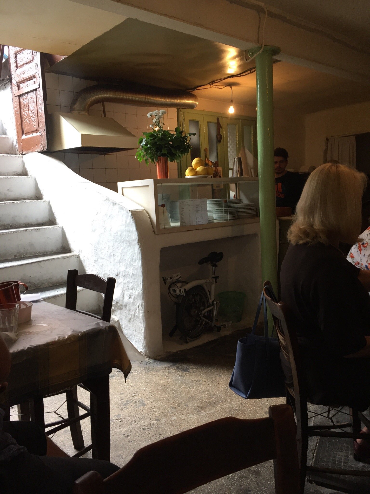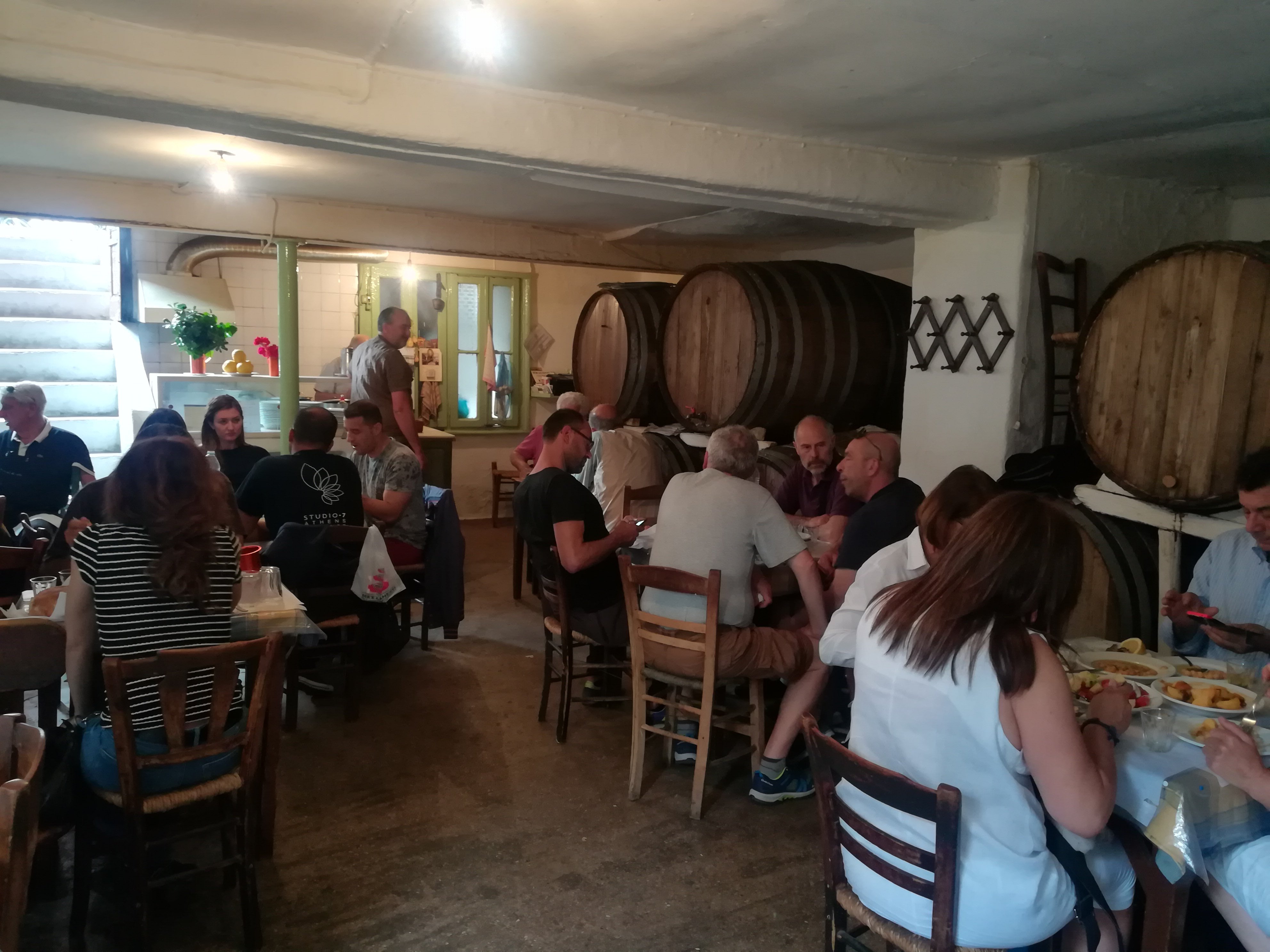 Στα 9 συνολικά τραπεζάκια που έχει όλα κι όλα το μαγαζί, στρωμένα με λαδόκολλα, κάτω απο βαρέλια με καλή ρετσίνα, μπορεί να συναντήσει κανείς -και να φάει μαζί στο ίδιο τραπέζι αν υπάρχει πολύς κόσμος- από ψαράδες και μανάβηδες που πετάγονται απο την Βαρβάκειο για να τσιμπήσουν, μέχρι γνωστούς αθηναίους και νεολαίους που έχουν μαγευτεί από τον κυρ Μήτσο, τον πάντα ακούραστο μάγειρα και σερβιτόρο…