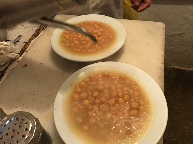 Το μενού σήμερα είχε φασολάδα γίγαντες, ρεβίθια, φάβα, χόρτα, σαρδελίτσες και κοφτό μακαρονάκι με σουπιά.