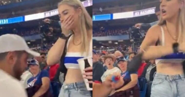 Ένας νεαρός άνδρας στις ΗΠΑ αποφάσισε να κάνει μια έκπληξη στην αγαπημένη του. Την πήγε σε ένα αγώνα της αγαπημένης του ομάδας και αφού την φίλησε γονάτισε για να της κάνει την παραδοσιακή πρόταση γάμου. Ωστόσο, η αντίδρασή της δεν ήταν αυτή που περίμενε.