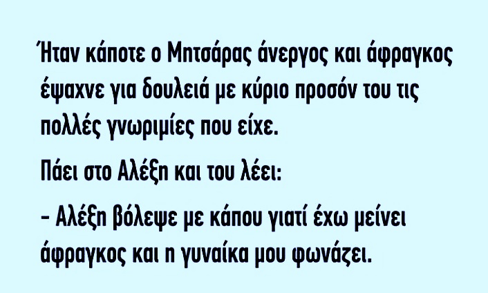 – Αλέξη βόλεψε με κάπου γιατί έχω μείνει άφραγκος και η γυναίκα μου φωνάζει.