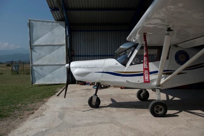 Το μεγάλο τολ (ημικυκλικό υπόστεγο) και τα δύο ανεμούρια, όμως, φανερώνουν ότι εκεί κάτι συμβαίνει. Ο Γιώργος Ηλιόπουλος βάζει δύναμη και ανοίγει τις δύο μεγάλες πόρτες. Μπροστά, στη «βιτρίνα», είναι ένα υπερελαφρό μονοκινητήριο διθέσιο και στο βάθος ακόμη δύο μικρά αεροσκάφη. Είναι οι εγκαταστάσεις της τοπικής αερολέσχης. Με μία ουσιαστική διαφορά από τις άλλες αερολέσχες: Τα μονοκινητήρια είναι τοπικής κατασκευής – Made in Florina.