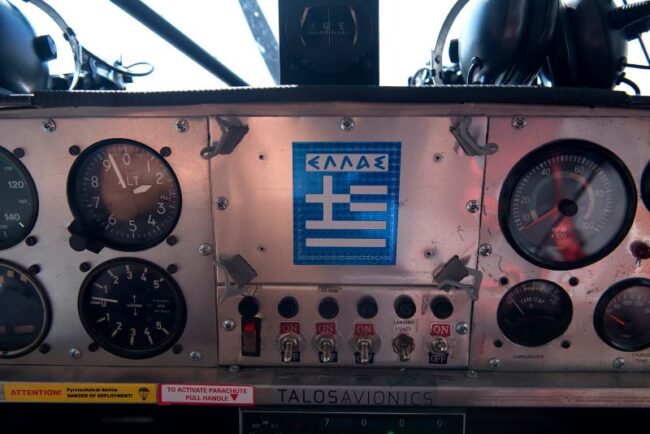 «Είχαμε μείνει από αεροπλάνο στην αερολέσχη. Για να αγοράσουμε ένα μεταχειρισμένο έπρεπε να δώσουμε πάνω από 25.000 ευρώ. Αυτό μας κόστισε 10.000 ευρώ. Όσοι ήθελαν, έβαλαν χρήματα και πετούν όλοι». Δείχνει το «Άταιρον». «Χωρίς ταίρι», αναφέρει ότι σημαίνει «όμως και At-air-on», συμπληρώνει. Ένα διθέσιο υπερελαφρό των 280 κιλών. Το βγάζει έξω από το υπόστεγο να μας το δείξει. «Το φτιάξαμε σε 16 μήνες. Χρόνος ρεκόρ για τα δεδομένα του χώρου», λέει. Χωρίς ρεύμα, χωρίς χρήματα και με τους κανονισμούς αεροπλοΐας να αλλάζουν από νύχτα σε νύχτα για τις ανάγκες άλλων ιδιωτών εισαγωγέων. Έτσι και το «Άταιρον» πήρε άδεια από την Ιταλία για να πετάει. Διαθέτει μάλιστα και αλεξίπτωτο που το καθιστά απολύτως ασφαλές για τους επιβαίνοντες.
