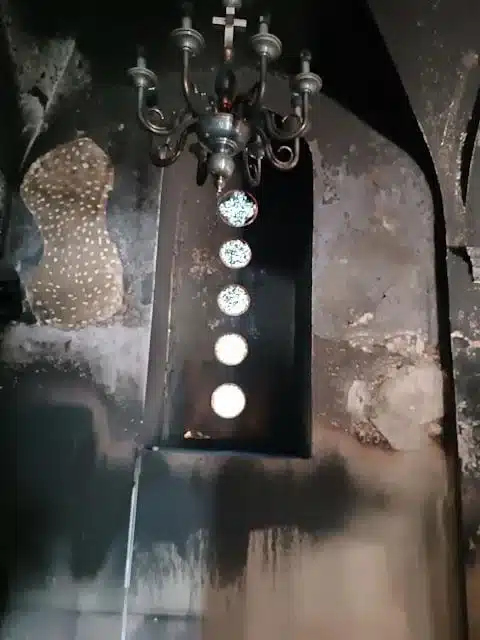 Ο ιστορικός ναός που χτίστηκε το 1870 και μετράει περισσότερα από 150 χρόνια ζωής εσωτερικά καταστράφηκε σχεδόν ολοσχερώς από τη φωτιά και τους καπνούς, προκαλώντας θλίψη στην τοπική κοινότητα και στους πιστούς.