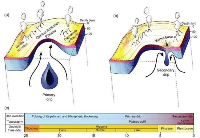 Το Υψίπεδο της Κεντρικής Ανατολίας διαμορφώνεται από το φαινόμενο του «λιθοσφαιρικού σταλαγμού», στο οποίο ο φλοιός της Γης μαλακώνει και στάζει βαθύτερα στο εσωτερικό του πλανήτη.