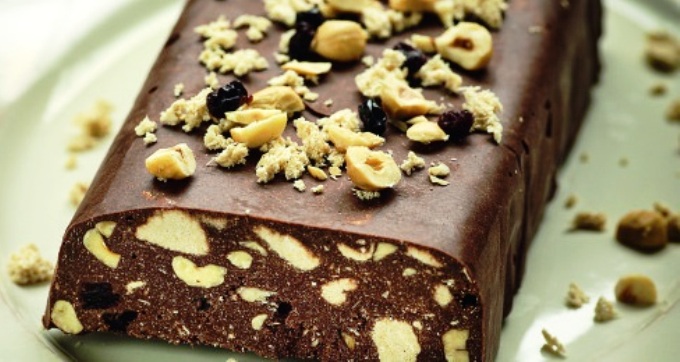 Τοποθετείτε χαρτί ψησίματος ή μεμβράνη μια μακρόστενη φόρμα του κέικ και αδειάζετε μέσα το μείγμα. Το σκεπάζετε με το περίσσευμα του χαρτιού ψησίματος ή της μεμβράνης και το αφήνετε στο ψυγείο για μερικές ώρες να σταθεροποιηθεί καλά. Αν βιάζεστε, το βάζετε για 1 ώρα στην κατάψυξη.
