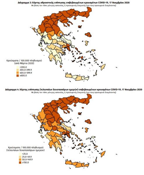 Τέλος, έχουμε 63 ακόμα καταγεγραμμένους θανάτους και 1.228 θανάτους συνολικά στη χώρα. 502 (40.9%) γυναίκες και οι υπόλοιποι άνδρες. Η διάμεση ηλικία των θανόντων συμπολιτών μας ήταν τα 80 έτη και το 97.2% είχε κάποιο υποκείμενο νόσημα ή/και ηλικία 70 ετών και άνω.