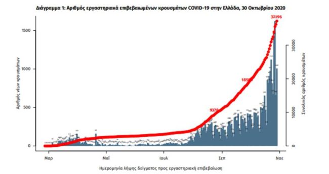 Τα στοιχεία που παρουσιάζονται αφορούν περιστατικά από την επιδημιολογική επιτήρηση της νόσου από το νέο κορωνοϊό (COVID19), με βάση τα δεδομένα που έχουν δηλωθεί στον ΕΟΔΥ και καταγραφεί μέχρι τις 30 Οκτωβρίου 2020 (ώρα 15:00).