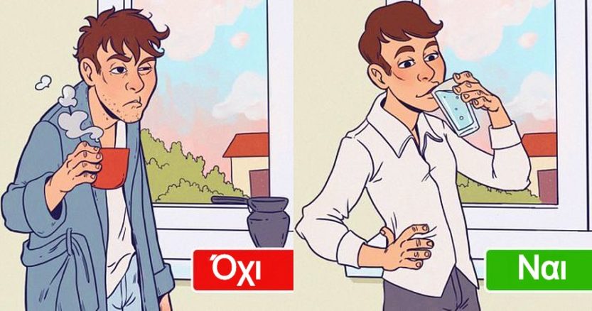 Όταν πρέπει να ξυπνήσετε, ο καφές ή το τσάι μπορεί να είναι ότι χρειάζεστε, ειδικά κάτι ζεστό σε ένα κρύο πρωί. Αντ’ αυτού, το πρώτο πράγμα που πρέπει να πιείτε είναι ένα ποτήρι νερό για να σας διατηρήσει ενυδατωμένους, δίνοντάς σας περισσότερη ενέργεια.