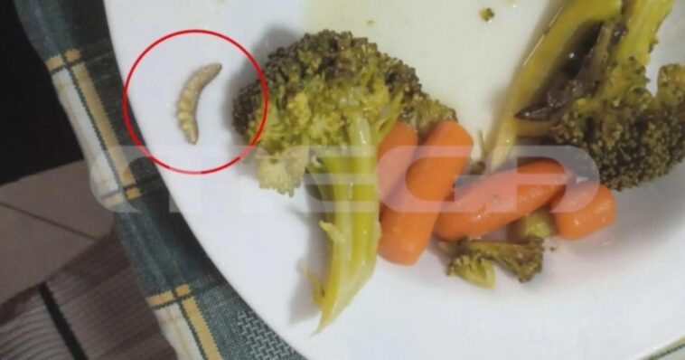 Σε μια από τις φωτογραφίες που παρουσίασε το Mega, μετά από καταγγελία που έλαβε από γονείς, φαίνεται μερίδα φαγητού που παρασκεύασε η συγκεκριμένη εταιρεία και διατέθηκε σε μαθητές, στην οποία βρέθηκε ένα σκουλήκι.