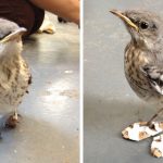Μικρό τραυματισμένο πουλάκι φορά «χιονοπέδιλα» και στέκεται και πάλι στα πόδια του.