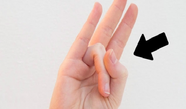 Λυγίστε το μικρό δάχτυλο και τον παράμεσο. Αγγίξτε τις άκρες αυτών των δύο δάχτυλων, στην άκρη του αντίχειρα.