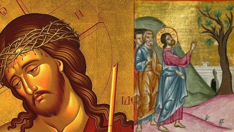 β) Το περιστατικό της άκαρπης συκιάς που ξέρανε ο Χριστός (Ματθ. 21, 18-22): Συμβολίζει την Συναγωγή των Εβραίων και γενικά την ζωή του Ισραηλιτικού λαού.