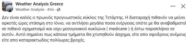Σύμφωνα με τη σελίδα weather analysis Greece: