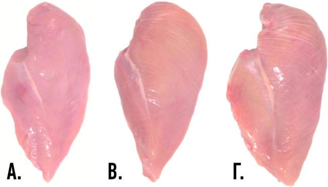 Όσο πιο μεγάλες και ορατές είναι, τόσο χειρότερη είναι η ποιότητα του κοτόπουλου, καθώς το ποσοστό πρωτεΐνης μειώνεται σημαντικά.