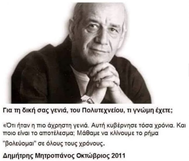 Για τη δική σας γενιά, του Πολυτεχνείου, τι γνώμη έχετε;