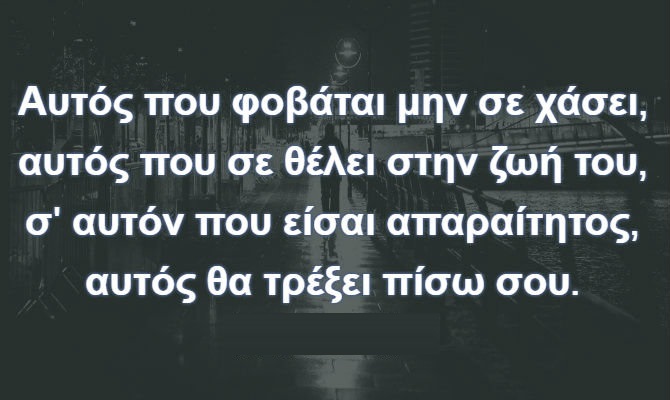 Αυτός που φοβάται μην σε χασει, αυτός που σε θέλει στην ζωή του, σ’ αυτον που είσαι απαραίτητος, αυτός θα τρέξει πίσω σου.