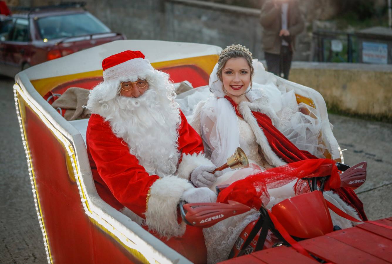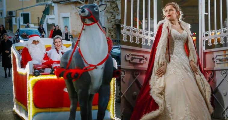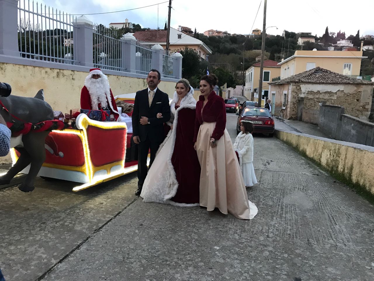 Το έλκηθρο του Santa το έσερνε ένας τάρανδος η πανέμορφη νύφη ζεστάθηκε με την κάπα του Santa και ο πανευτυχής γαμπρός τους υποδέχτηκε στα σκαλιά της Εκκλησίας ενώπιον συγγενών, φίλων και όλου του χωριού που έζησε μαζί τους το Παραμύθι της Πρωτοχρονιάς!