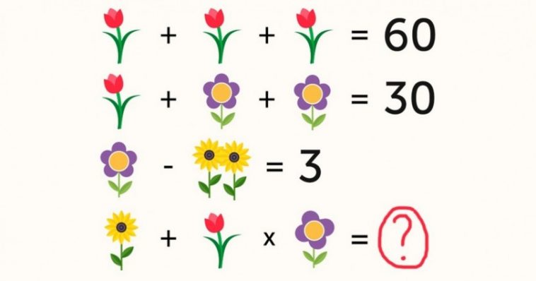 Η απάντηση είναι 81. Μάλλον δεν το βρήκατε σωστά εξαιτίας δύο μικρών λεπτομερειών. Πρώτον: ο αριθμός των κίτρινων λουλουδιών: στην τρίτη εξίσωση υπάρχουν 2 και στην τελευταία μόνο 1.