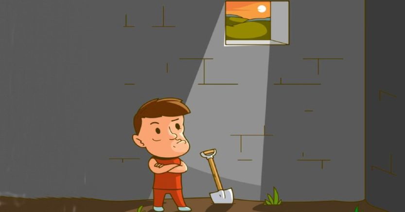 Απάντηση: Ο Τζακ θα πρέπει να χρησιμοποιήσει το φτυάρι για να φτιάξει ένα ύψωμα από χώμα κάτω από το παράθυρο, να ανέβει πάνω και να ξεφύγει από το κελί του.