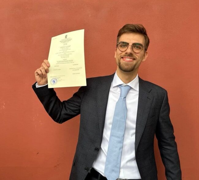 Ο 23χρονος αριστούχος δηλώνει ότι τον ενδιαφέρει ιδιαίτερα το εμπορικό και το ιδιωτικό διεθνές δίκαιο, ενώ ιδανικά θα ήθελε να συνδυάσει τη δικηγορία με ακαδημαϊκή καριέρα και έρευνα.