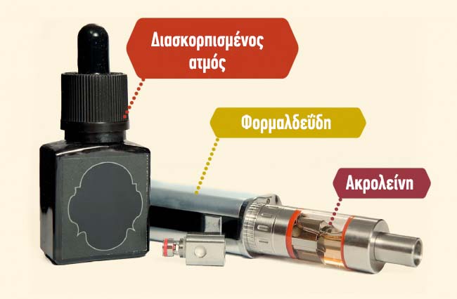 Τα κύρια συστατικά κάθε υγρού ατμίσματος είναι η προπυλενογλυκόλη και η γλυκερόλη. Οι επιστήμονες διαπίστωσαν ότι όταν θερμαίνονται, αποσυντίθενται και απελευθερώνουν τοξικές ουσίες, όπως η φορμαλδεΰδη και η ακρολεΐνη. Η φορμαλδεΰδη έχει αρνητικές συνέπειες στο νευρικό σύστημα και η ακρολεΐνη ερεθίζει τις βλεννώδεις μεμβράνες της αναπνευστικής οδού και τα μάτια.