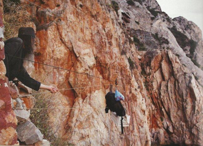 Οι ξύλινες σκάλες που είναι καρφωμένες στα βράχια, χρησιμεύουν στους ερημίτες για να ανέβουν και να κατέβουν το βουνό.