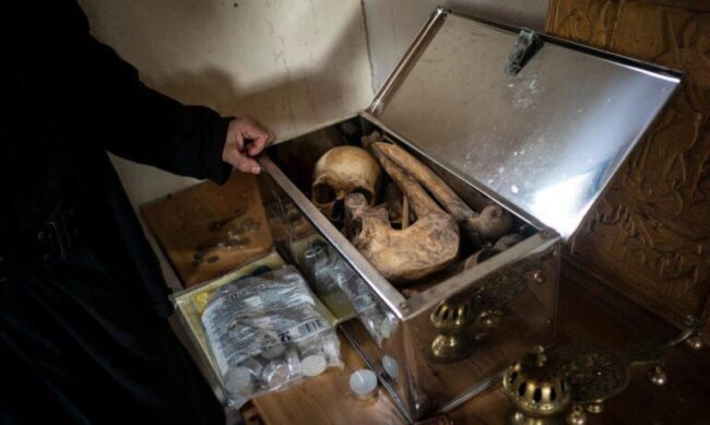 Τα οστά του μοναχού που κατοικούσε σε αυτό το κελί φυλάσσονται σε ασημένιο κουτί. Συνηθίζεται, ο μοναχός ακόμη και μετά τον θάνατο του να παραμένει στον χώρο που έζησε.