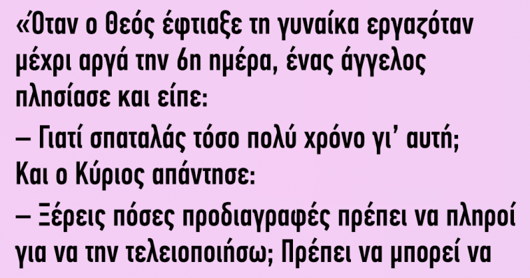 «Όταν ο Θεός έφτιαξε τη γυναίκα εργαζόταν μέχρι αργά την 6η ημέρα, ένας άγγελος πλησίασε και είπε: