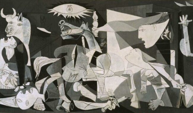 Το διασημότερο ίσως έργο του Πικάσο είναι η Guernica-η απεικόνιση του Γερμανικού βομβαρδισμού της πόλης της Ισπανίας Γκερνίκα. Στον κορυφαίο αυτό πίνακα περιγράφει την απανθρωπιά, τη βιαιότητα και την απόγνωση του πολέμου. Από το 1992 βρίσκεται στο Εθνικό Μουσείο Τέχνης Βασίλισσα Σοφία στη Μαδρίτη.