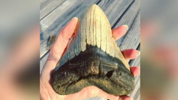 in Περίεργα Βρήκε στην παραλία δόντι μήκους 15 εκατοστών Καρχαρία και είναι τόσο μεγάλο που δεν χωράει στο χέρι του.