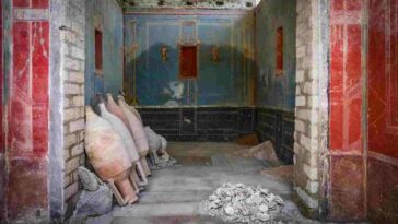 in Media Πομπηία: Οι αρχαιολόγοι ανακάλυψαν ένα σπάνιο μπλε δωμάτιο με τοιχογραφίες γυναικείων μορφών