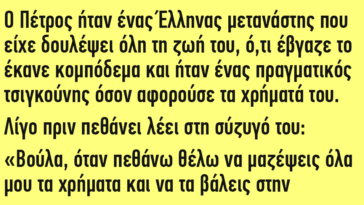 in Αστεία O Πέτρος ήταν ένας Έλληνας μετανάστης που είχε δουλέψει όλη τη ζωή του, ό,τι έβγαζε το έκανε κομπόδεμα και ήταν ένας πραγματικός τσιγκούνης όσον αφορούσε τα χρήματά του.