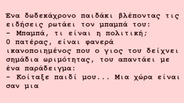 in Αστεία Ανέκδοτο: Ένα 12χρονο παιδάκι βλέποντας ειδήσεις ρωτάει τον μπαμπά του τι είναι η πολιτική;